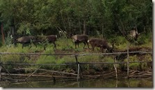 The next morning we are up at 5:30 am to get our bags out and get bussed over to the paddle wheel boat ride on the Chena river, with a stop at a replica of an Atabascan Indian Village. First we say the reindeer. The guide asked if we knew the difference between reindeer and caribou, one guy said reindeer fly, too funny, but wrong answer. Reindeer are domesticated, and Caribou are wild.